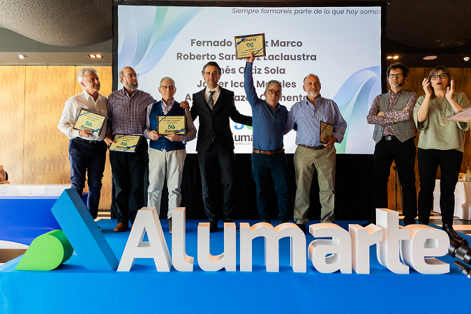 Uno de los instantes más emocionantes fue el reconocimiento a todas esas personas que han dedicado su vida a Alumarte: trayectorias de más de 20 y 30 años, despedidas hacia la jubilación cargadas de aplausos, respeto y emoción.