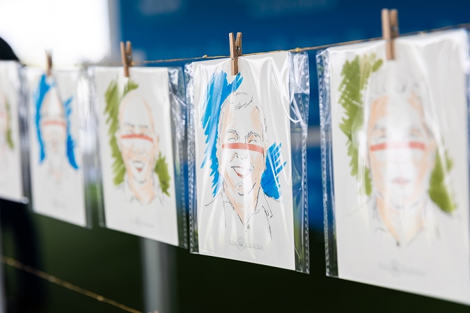 El evento arrancó con un cóctel de bienvenida donde llegó la primera gran sorpresa: un retrato ilustrado en directo, una forma única de capturar no solo la imagen, sino la esencia de cada invitado.