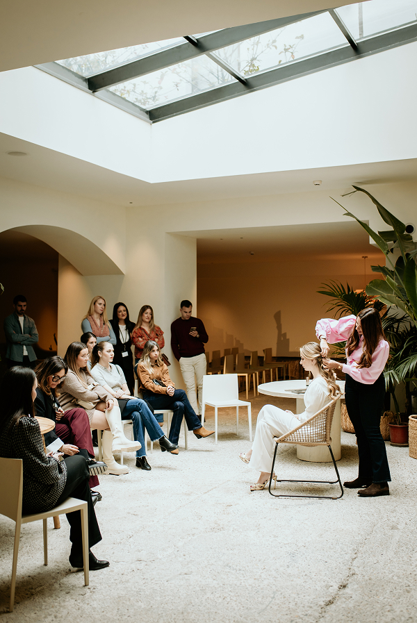 Un momento destacado de la jornada fue el taller impartido por Eva Pellejero, donde las parejas pudieron descubrir ideas prácticas y estilos de peinado y maquillaje para que las novias brillen en su día especial.