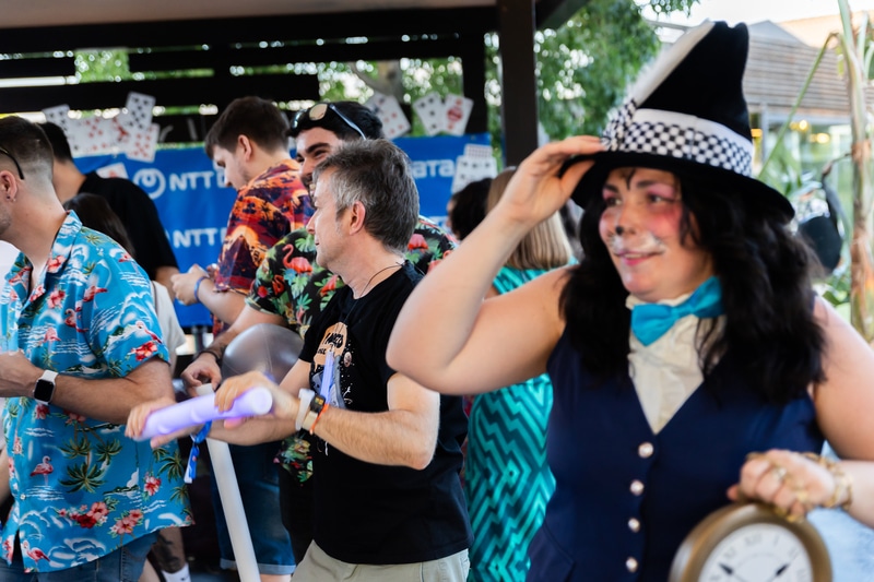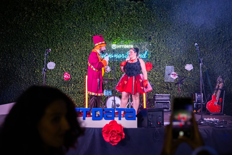 El pasado 20 de junio, en la Finca la Alquería de Zaragoza, organizamos el Festival Summer Sound 2025 para 300 personas, transportándolas a un universo mágico inspirado en Alicia en el País de las Maravillas. Un formato ideal para quienes buscan una fiesta de empresa diferente.